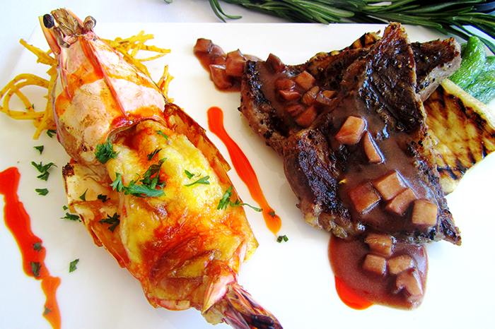 肉類-烤安格斯牛排荷蘭汁焗開(kāi)邊大蝦